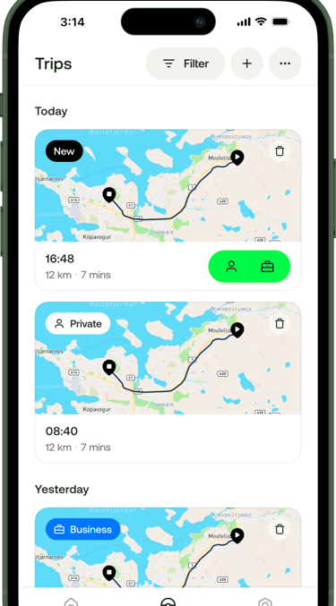 Skattfrjáls endurgreiðsla aksturspeninga með sjálfvirkri skráningu ferða, hvaðan og hvert var ekið, ásamt fjölda ekinna kílómetra. Þú þarft einungis að flokka og skilgreina tilgang ferða og í lok hvers mánaðar sendir þú svo endurgreiðslubeiðni á vinnuveitanda þinn úr appinu.