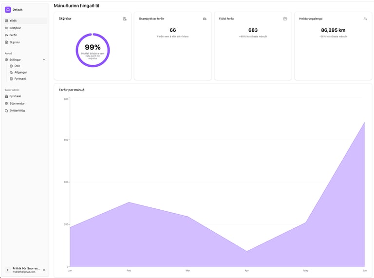 Skreppa veitir atvinnurekendum fulla yfirsýn yfir aksturskröfur starfsmanna, tryggir nákvæmar greiðslur og fylgni við reglur RSK.